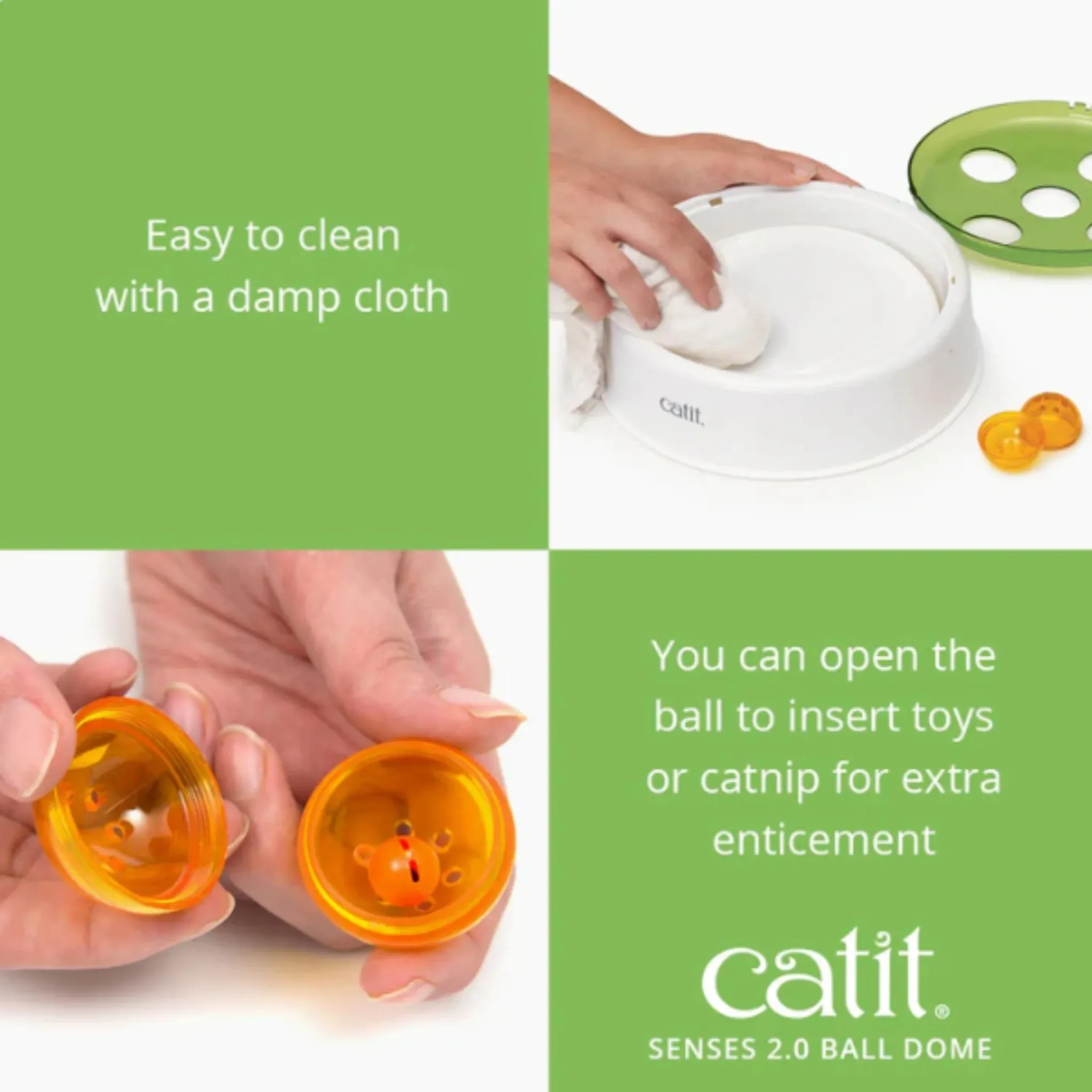 The Catit Senses Ball Dome is an interactive cat toy designed to keep your cat mentally engaged and physically active. This motion-activated ball dome encourages natural hunting instincts, providing hours of entertainment for cats of all ages. The enclosed design prevents the ball from rolling away, keeping playtime contained and frustration-free. With a whisper-quiet motor, the toy is perfect for day and night play. Compatible with Catit Senses play circuits, this stimulating toy helps prevent boredom, promotes healthy exercise, and is made from safe, durable materials for long-lasting fun.