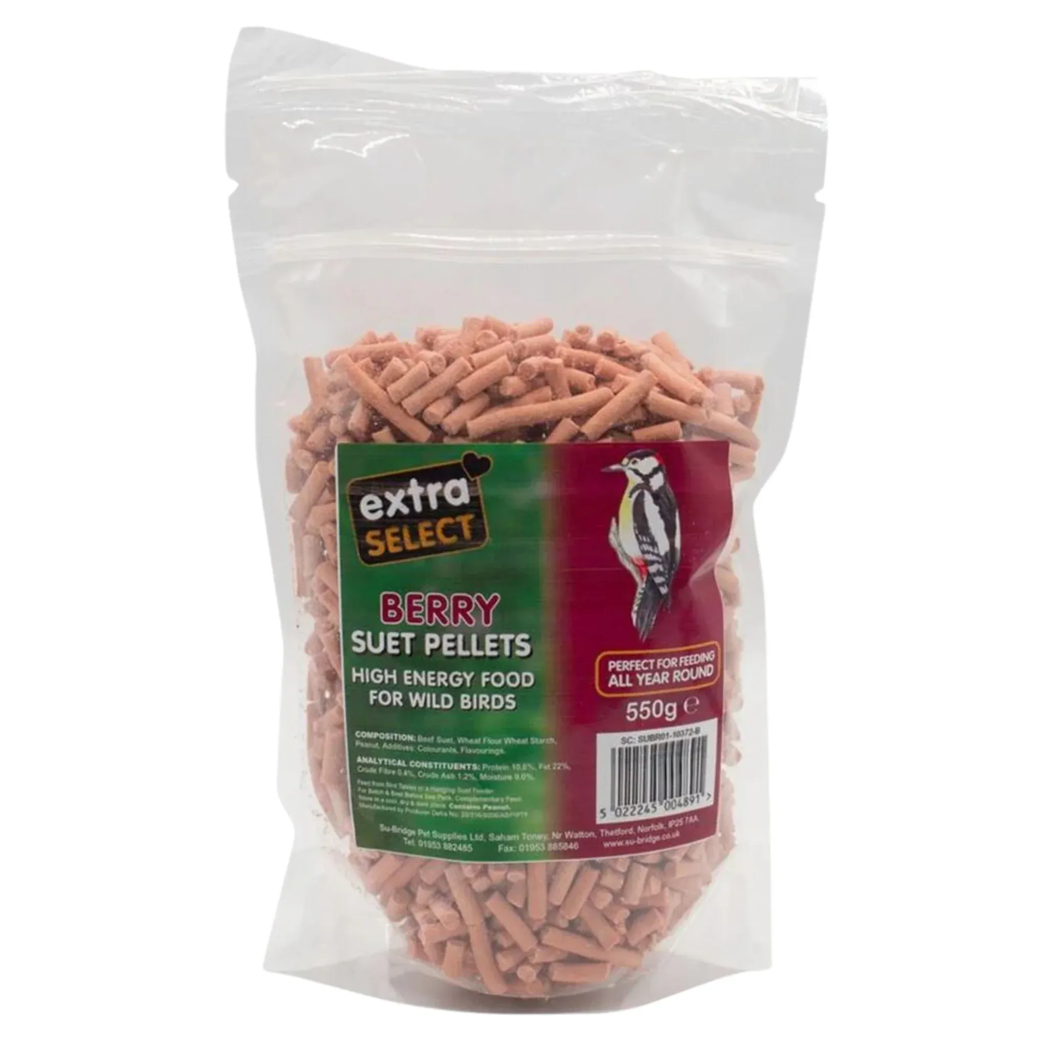 Extra Select Berry Suet Pellets 550g provide a delicious, high-energy treat for wild birds. Made with a blend of suet and berry flavouring, these pellets attract a variety of birds, particularly during the colder months. They are a great source of energy and are ideal for use with seed mixes or on their own. Perfect for year-round feeding, these pellets are packed with nutrients to support the health and well-being of garden birds.