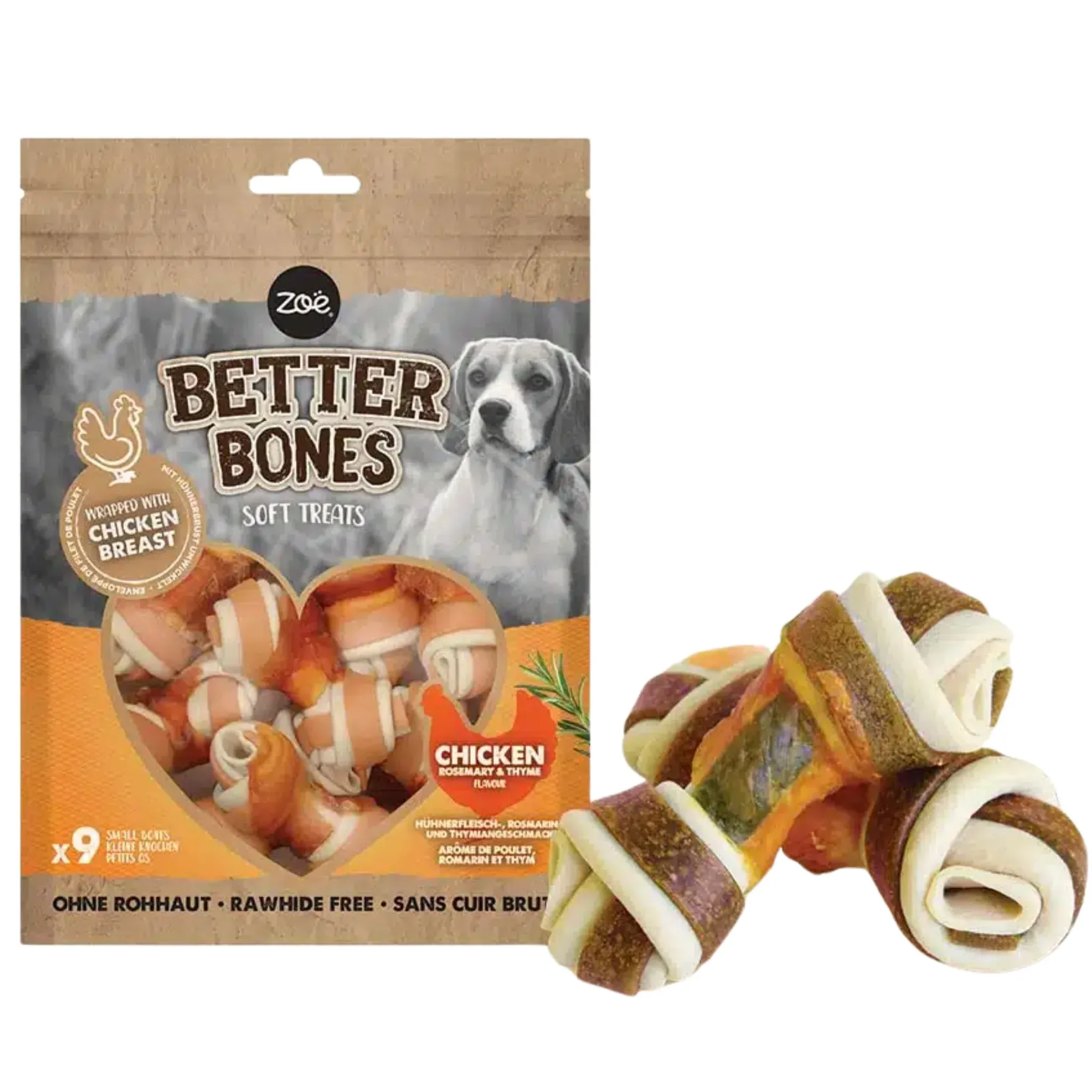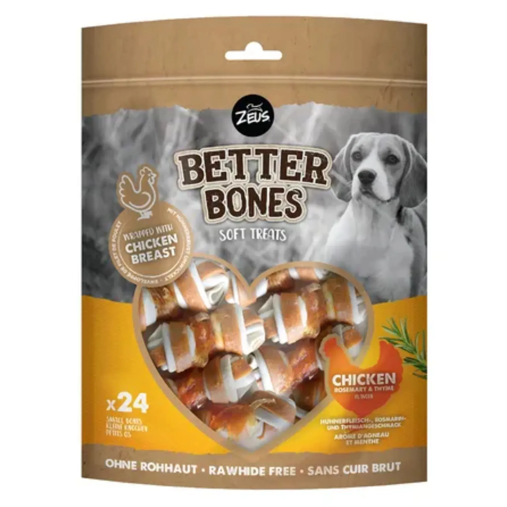 Zeus Better Bone Chicken-Wrapped Dog Bones are the perfect natural treat for your dog. Made with real chicken and infused with rosemary and thyme for a delicious flavour, these nutritious chews provide long-lasting enjoyment while supporting dental health. Free from rawhide, artificial preservatives, and additives, they are gentle on digestion and packed with protein. Ideal for rewarding good behaviour or keeping your dog entertained with a healthy, flavourful chew.